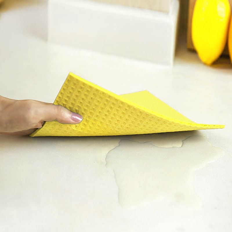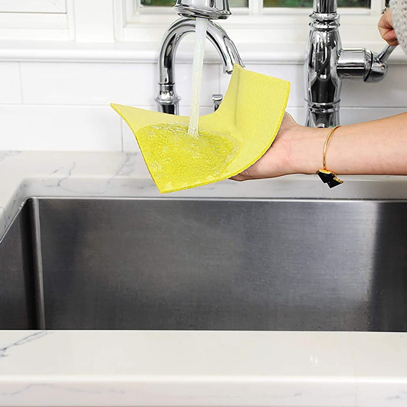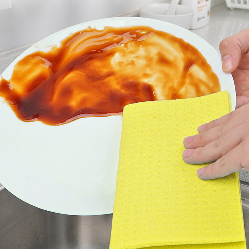 Leicht zu reinigen: Im Vergleich zur porösen Struktur herkömmlicher Schwämme, die dazu neigt, Schmutz und Dreck anzusammeln, ist die Wahrscheinlichkeit, dass die Holzzellstoff-Baumwollfasern Flecken und Gerüche zurückhalten, geringer.