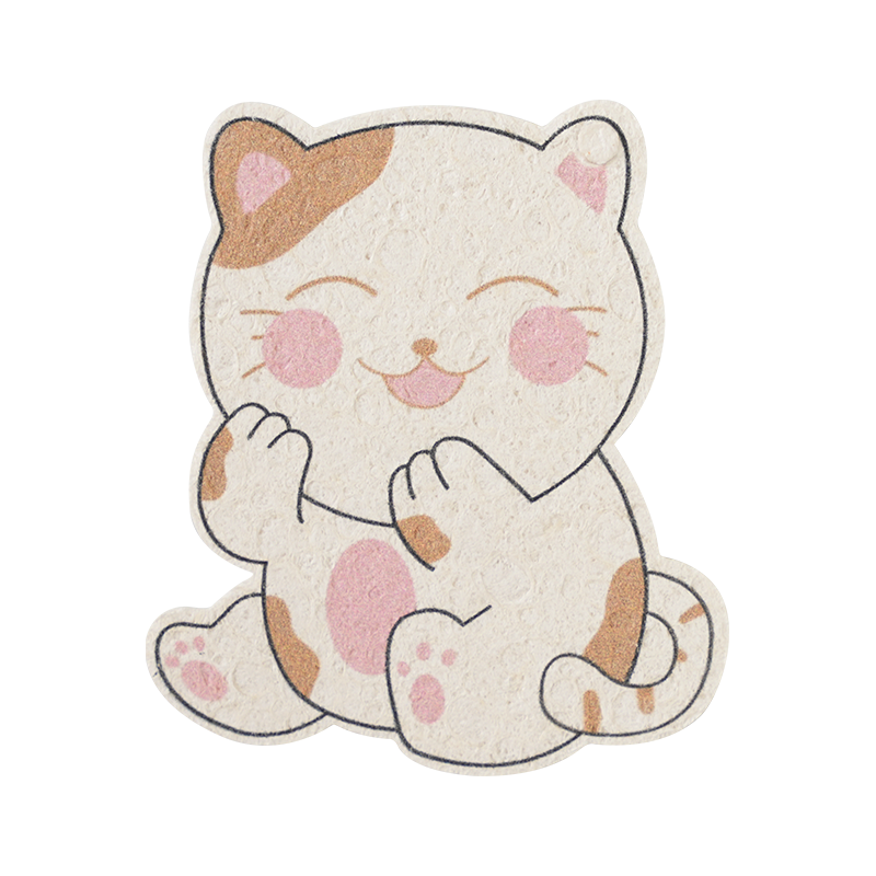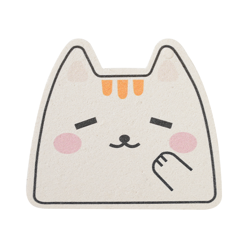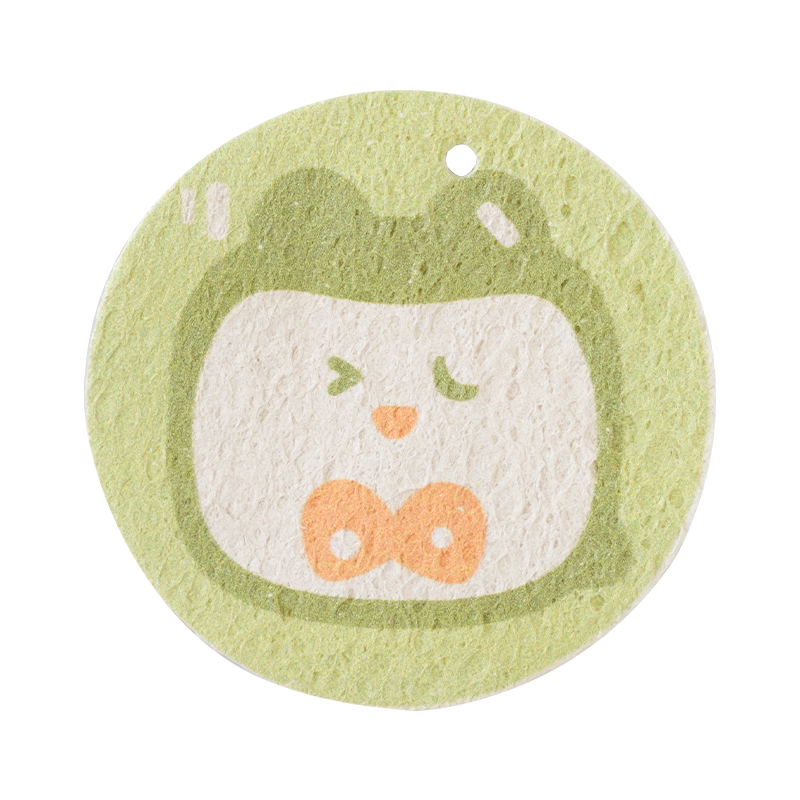 Lassen Sie mich Ihnen eine andere Form eines Holzschwamms zeigen, den komprimierten Zelluloseschwamm. Dies wird durch Hochtemperatur-Heißpressen aus Zellstoffbaumwolle hergestellt. Der komprimierte Zelluloseschwamm behält nicht nur alle Vorteile eines Holzzellstoff-Baumwollschwamms bei, nach dem Pressen reduzieren wir das Schwammvolumen, um die Versandkosten niedrig zu halten, wir können auch Logos oder andere Designs auf die Oberfläche drucken. Das macht das Putzen lustiger.